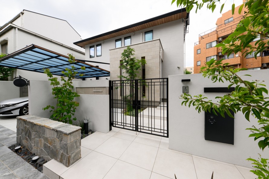 建物との調和を図るため白を基調とした洋風な外構をデザインしました。